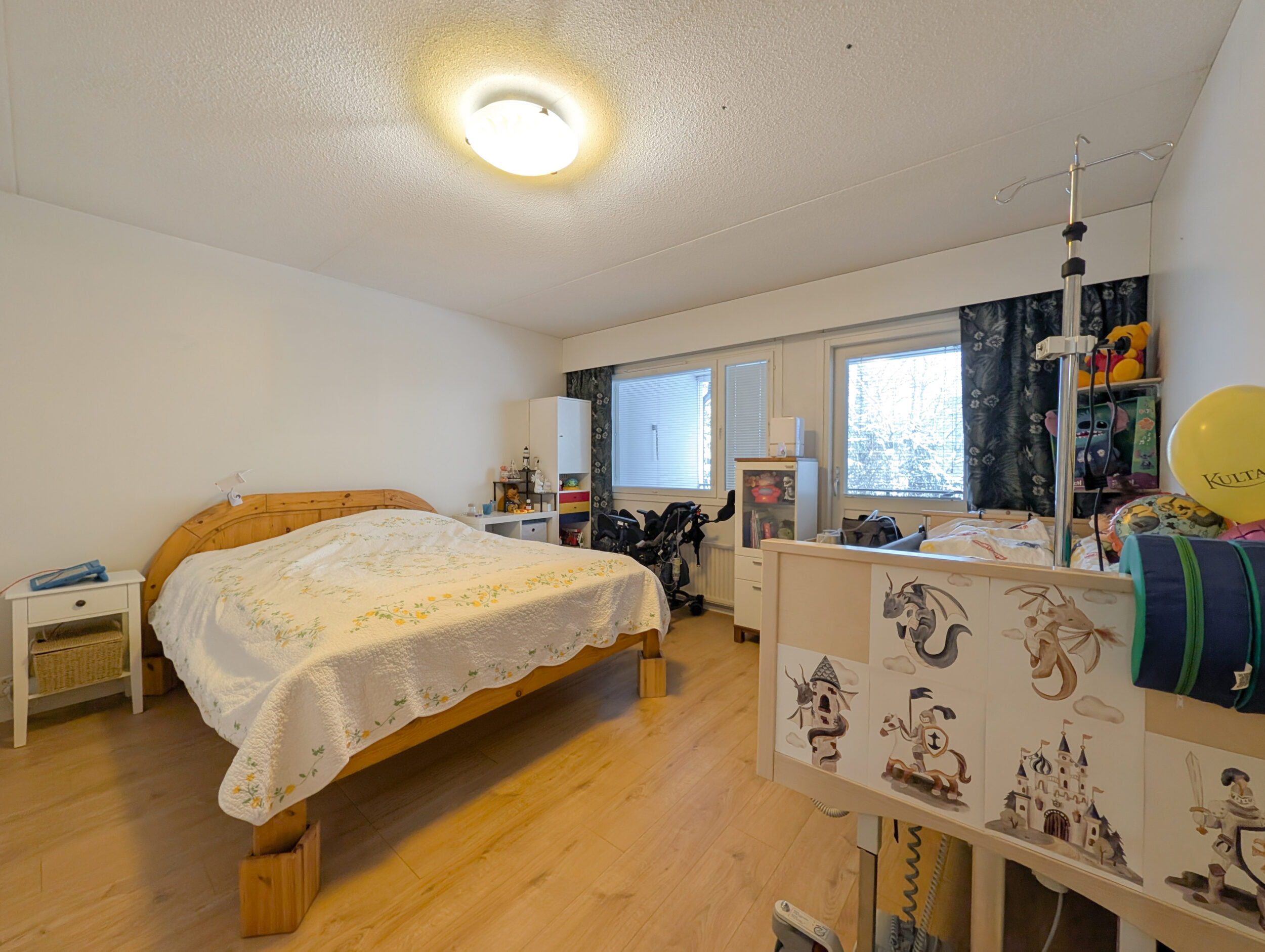 - Kulkurampin asennus (01/2026): Osakkaalle on annettu lupa asentaa kulkuramppi ulko-ovelle pyörätuolilla kulun helpottamiseksi. Rampin asentaa Invalidiliitto tai sen yhteistyökumppani. Osakas vastaa asennuksesta aiheutuvista korjauksista sekä rampin purkamisesta ja tilan ennallistamisesta, mikäli tarve rampille päättyy tai asukas muuttaa pois.